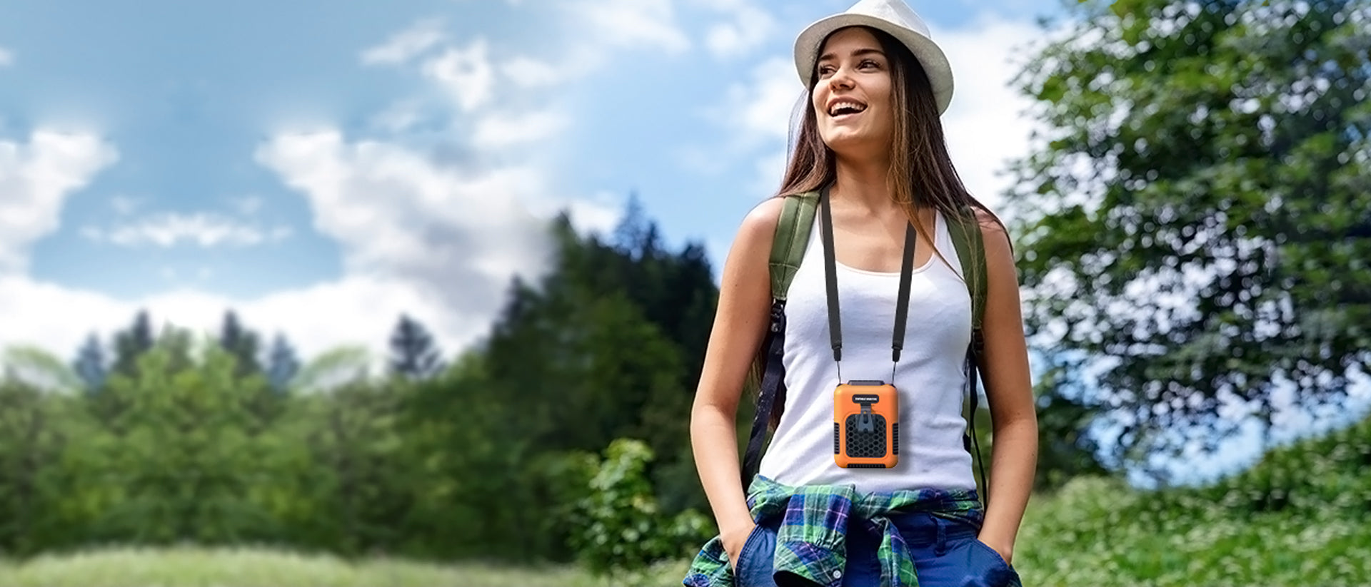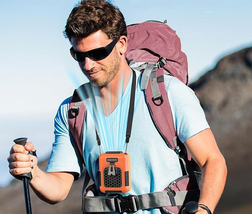 Our outdoor travel fan features a dual-clip structure. The larger clip firmly secures it to your waistband or pants, while the smaller clip keeps your clothes in place, ensuring the cool air doesn't escape and quickly cooling your body. Additionally, the adjustable hanging rope allows you to hang the mini fan around your neck for added convenience.