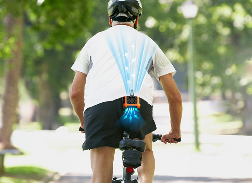 Stay cool with the waist fan’s strong airflow. 6000mAh rechargeable battery provides 24 hours of airflow.