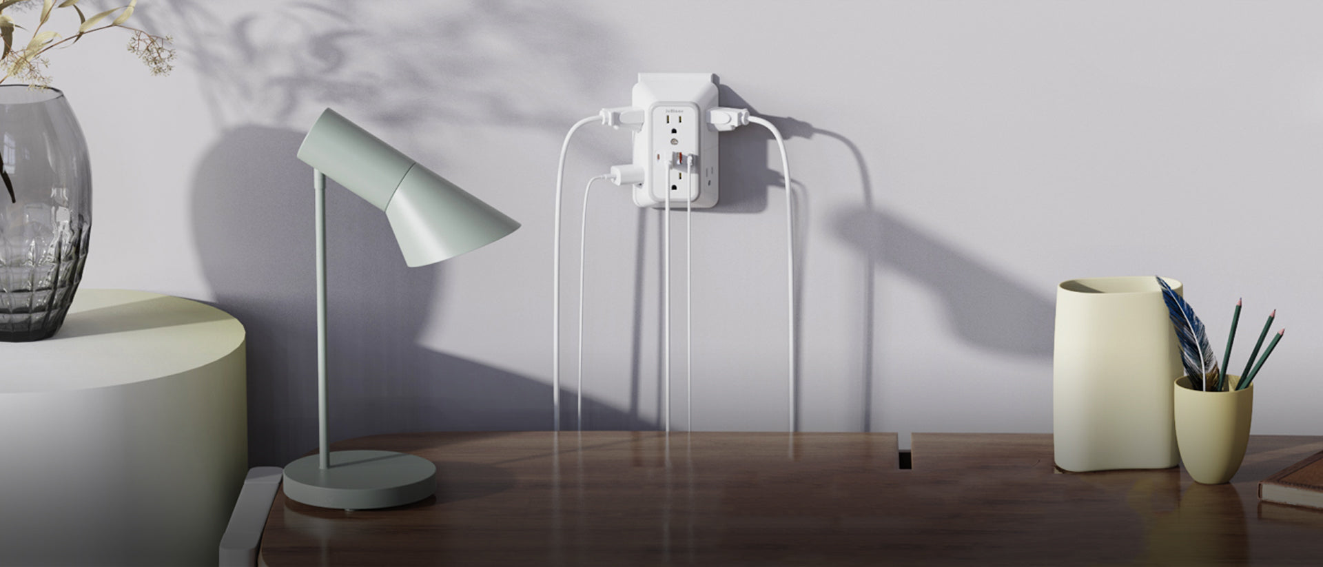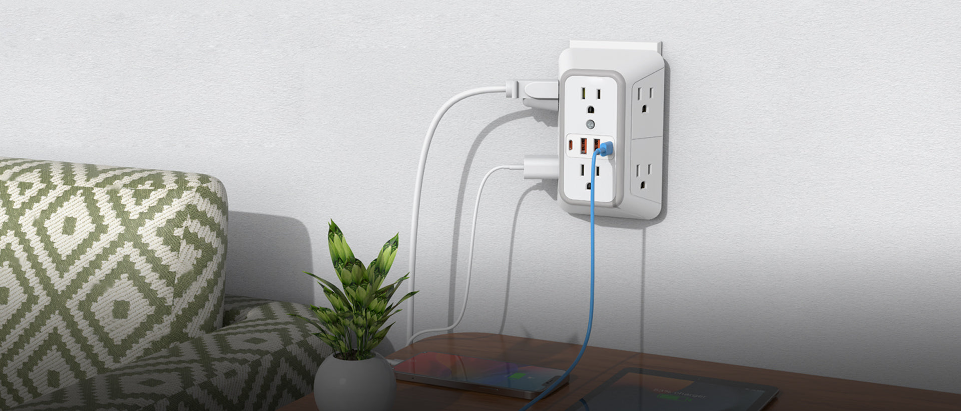 Convert a single socket into six outlets plus two USB ports for multiple devices.