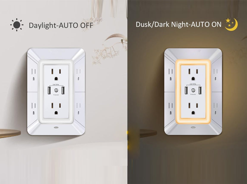 "Works exactly as advertised—simple plug-and-play. The ambient light-activated night light is great, and I can charge multiple devices at once. Even my elderly mother loves it, thanks to the extra outlets and USB ports!"