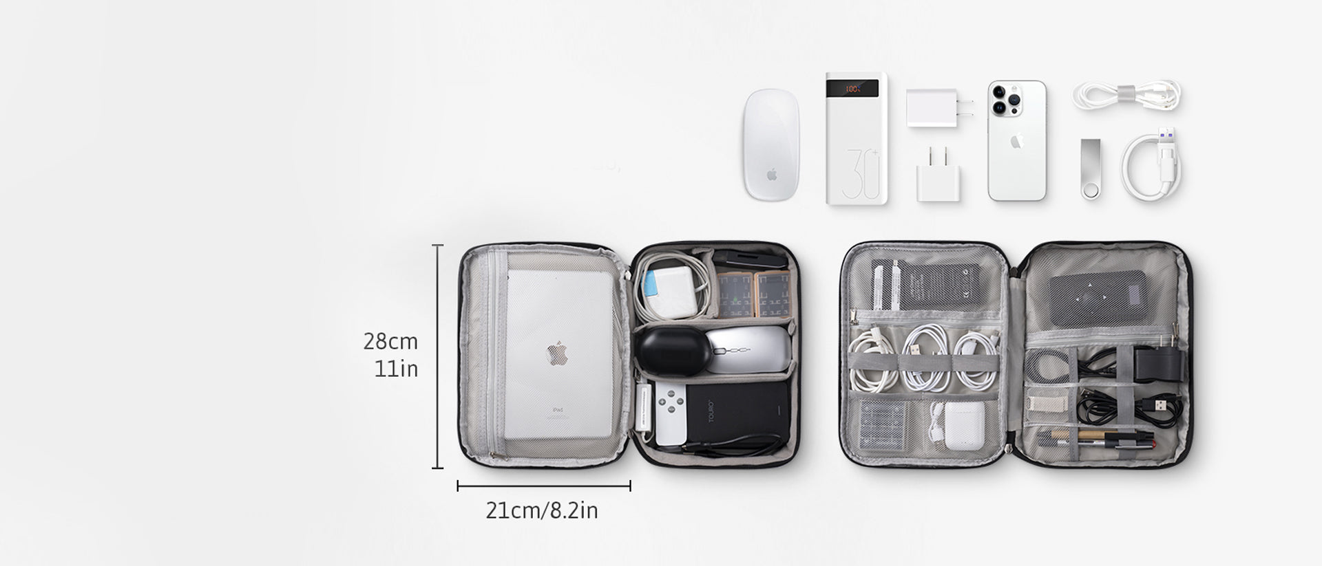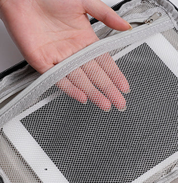 Mesh Pockets: Easy visibility and access for chargers and adapters with breathable material.