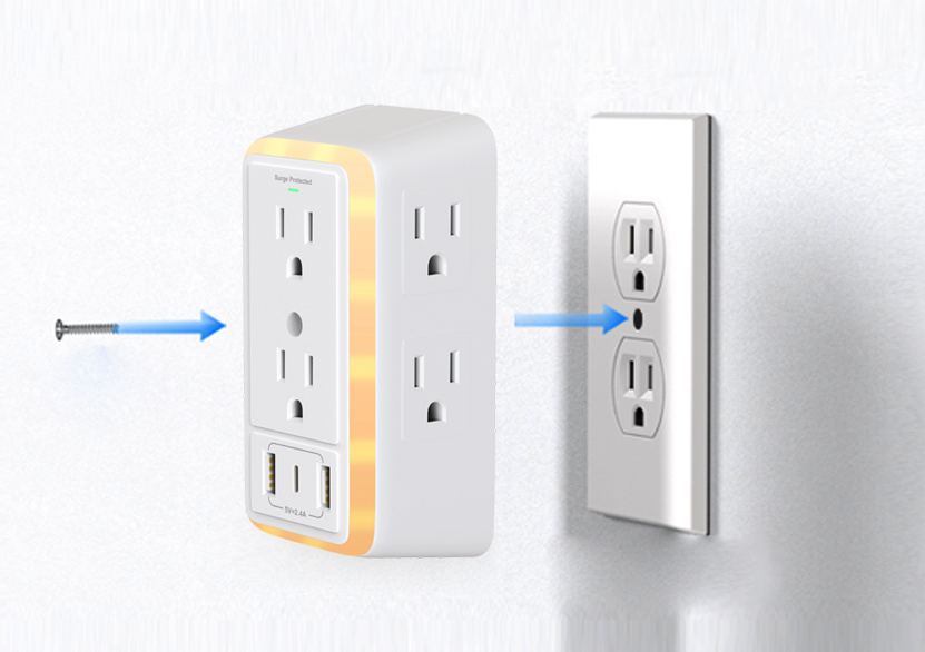 Wall-mountable design makes it easy for insertion and extraction, and also reduce superfluous wall socket. Charging up to 8 electrical devices simultaneously with 6 AC outlets, 2 USB ports. Quick charge 2.4A for smart devices.