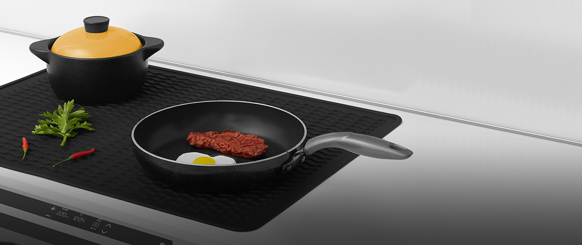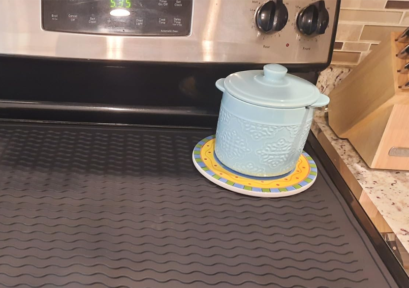 This oversized silicone stove cover shields your glass or electric cooktop from scratches, spills, and stains while doubling as extra counter space.